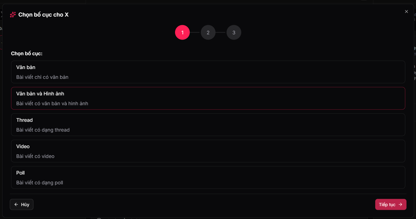 Text (tweet đơn): tạo phản hồi nhanh (reply, quote)