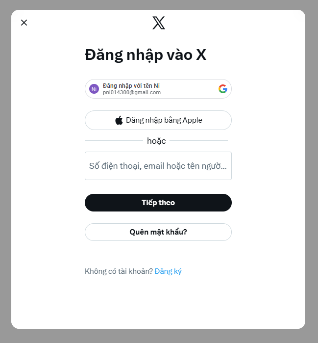 • Nhấn chọn nút Kết nối, sau đó sẽ chuyển sang giao diện đăng nhập vào X, đăng nhập vào tài khoản của bạn.